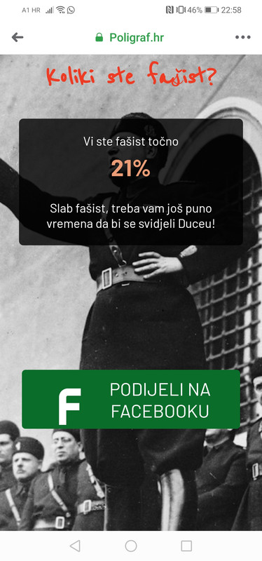 Samo da napomenem, ovo je u zabavne svrhe, ne znači nužno da jeste ili niste fašisti. Ali zanimljivo će biti usporediti rezultate.