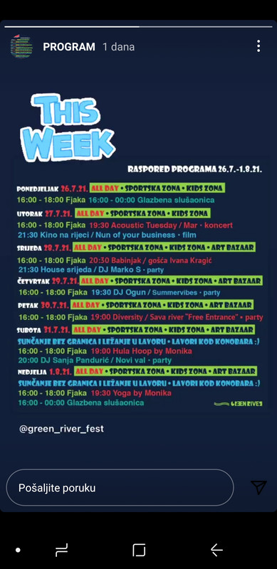 Svaki dan do kraja ljeta na Savi vas ceka Green River Fest. Glazba, filmovi, sport, hrana, kokteli, pravi mali ljetni chill ???
